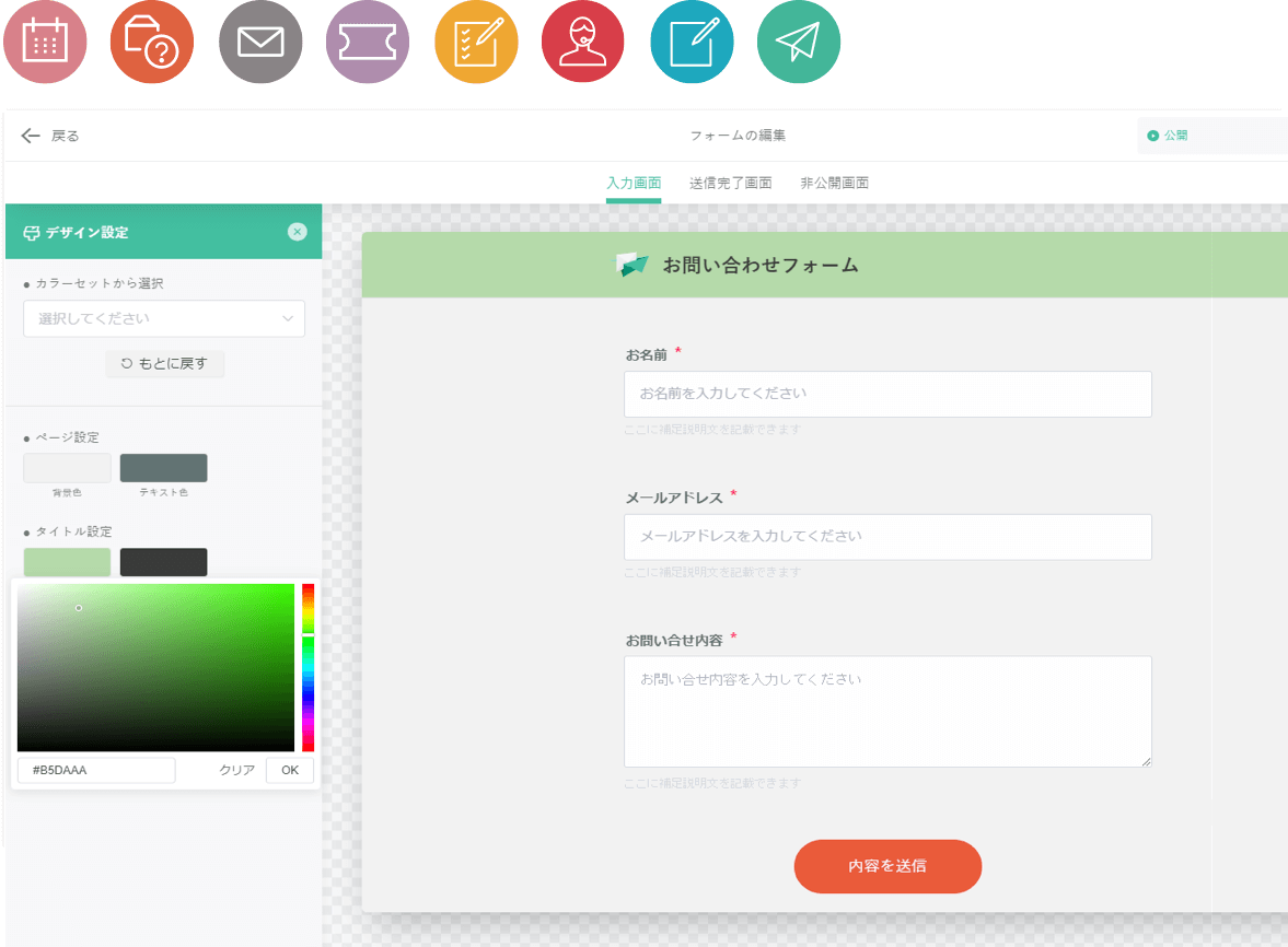 設置するWebサイトに合わせて、さまざまなWebフォームを作成できるようになっています。
